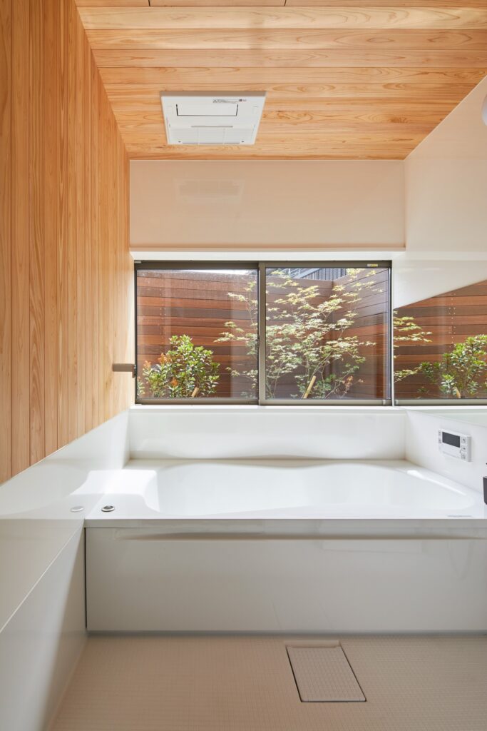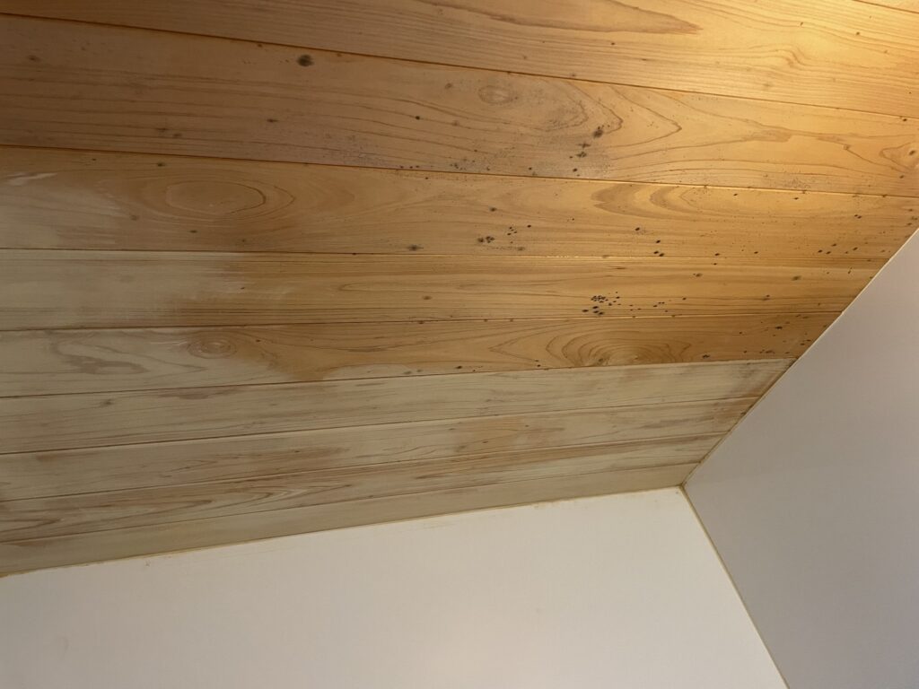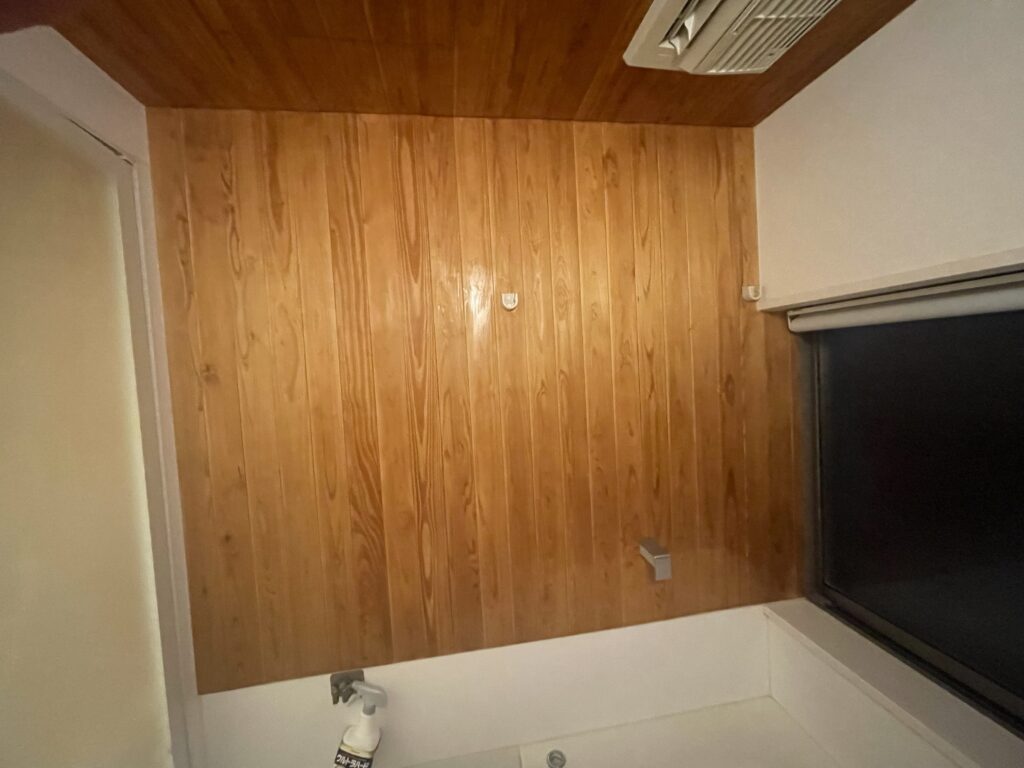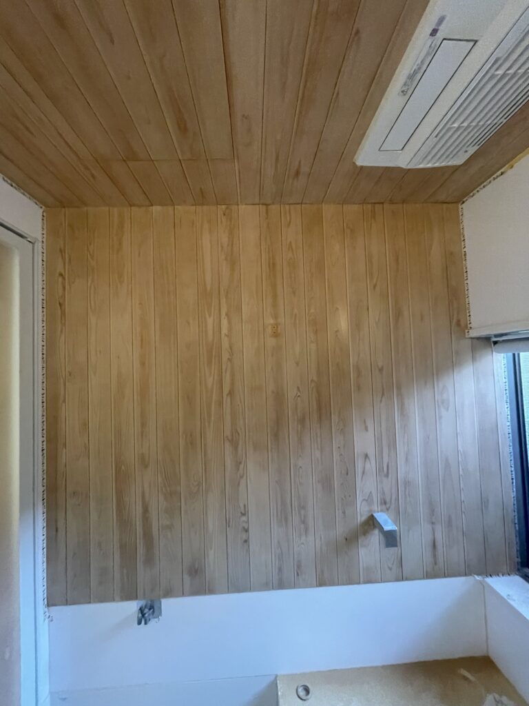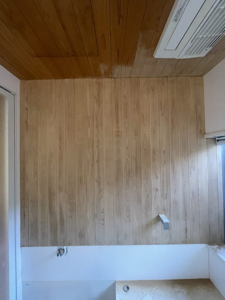 自宅のお風呂の天井と壁の一部に木を