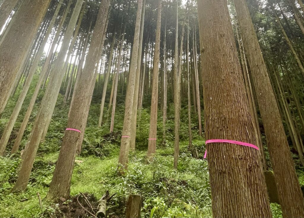 全部で杉の木4本分で4番玉まであるので