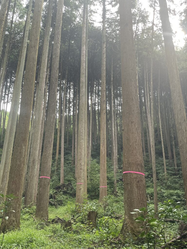 先日、住宅建築の材で山の木の選定に行ってきました。