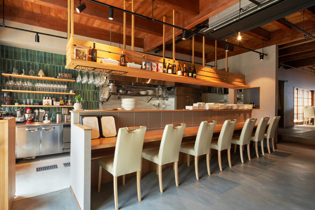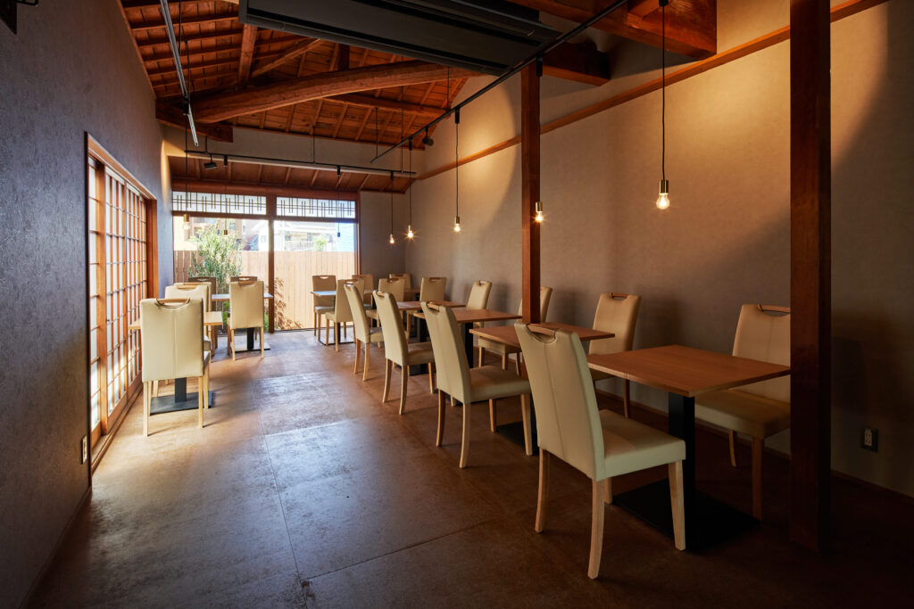 貝塚市の古民家の雰囲気を活かしながら、レストランとして使いやすい空間へと改装しました。